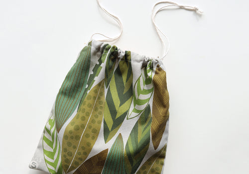 This drawstring pouch is made using fabric from two months of our Bookhou 2026 fabric calendar. It has a simple, unlined construction, perfect for sewing beginners.